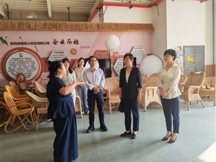 清晨的阳光投洒下一片秋色斑斓,汉山脚下的藤编巧娘也开始了一天的忙碌,只见藤蔓、竹条在指尖飞舞,约么半天功夫,一把椅子、一个茶几纹理初现。“习近平总书记在汉中考察时强调,汉中藤编等非物质文化遗产久负盛名,要发展壮大特色产业,更好带动群众增收致富。暖心话语给予我们非遗从业者极大地鼓舞。”在位于南郑区的陕西良顺匠心实业有限公司,该公司总经理、市妇联五届执委唐芳向调研组一行介绍了她立足三八红旗手(妇联执委)非遗传承工作室,引领带动周边留守妇女姐妹学技艺促增收的有关情况。在南郑区文化馆、区检察院,调研组一行详细了解该系统三八红旗手胡婧工作室、黄伟维权工作室在传承中华民族优秀传统文化、维护妇女儿童权益方面的工作实践。